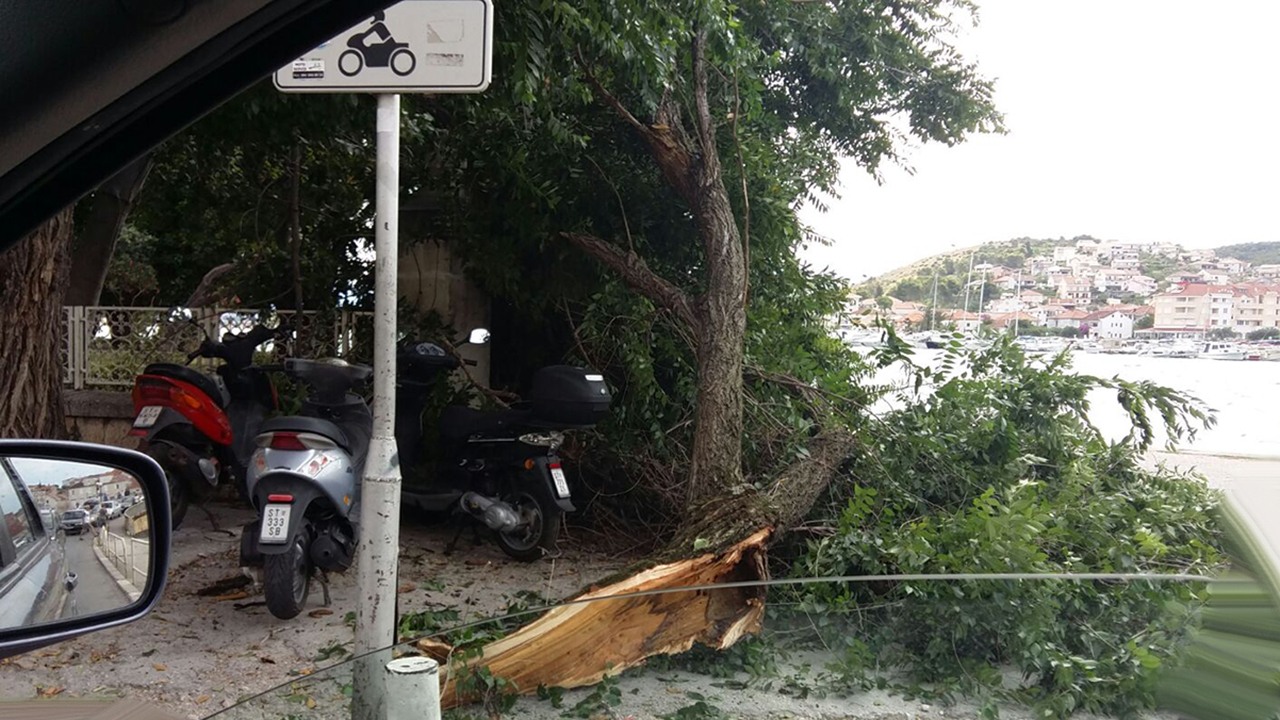 Prve posljedice ljetne bure: U Trogiru palo stablo u centru grada
