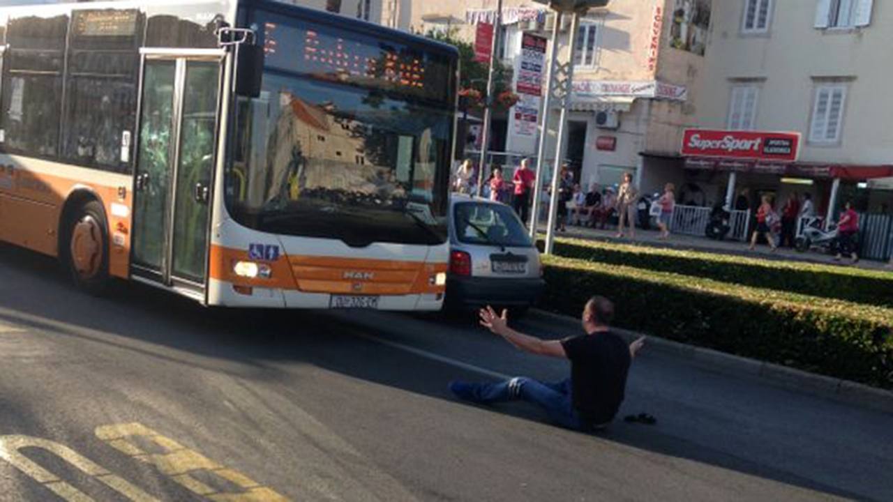 Jučer u popodnevnim satima šofer autobusa u Dubrovniku pokušavao se okrenuti na Pilama i primiti putnike, kad mu se nasred puta ispriječio čovjek koji je legao na cestu.