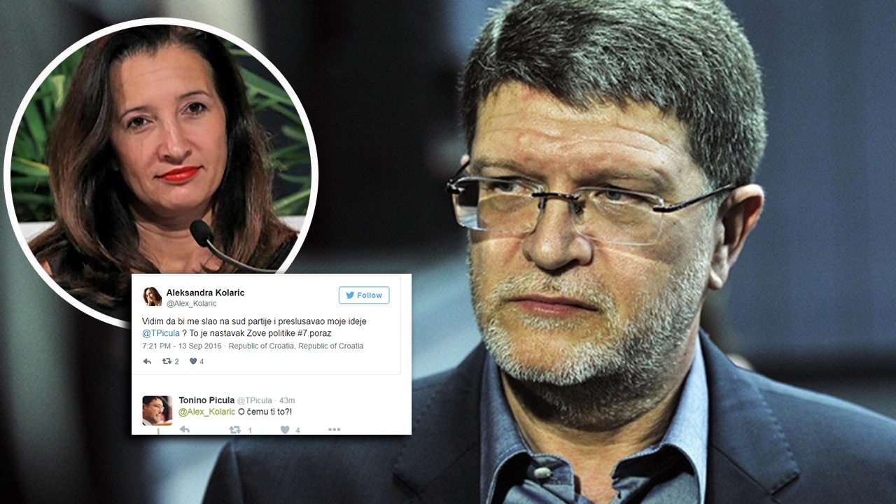 “Vidim da bi me slao na sud partije i preslušavao moje ideje @TPicula ? To je nastavak Zove politike #7.poraz”, napisala je Kolarić na Twitteru.