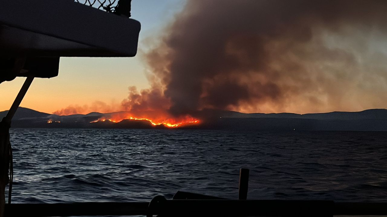 17:50 – Požar se vidi i s otoka Brača. Fotografiju su objavili vatrogasci iz Supetra.