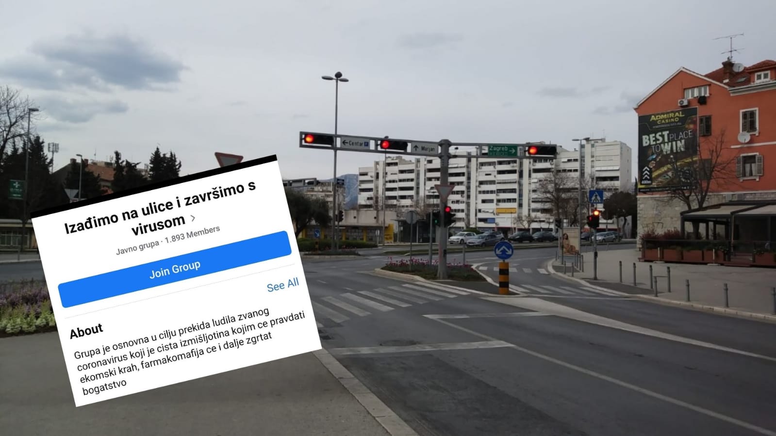 ‘Izađimo na ulice i završimo s virusom‘ ili ‘Izađimo na ulice i završimo cirkus‘ bili su nazivi grupa na društvenoj mreži koje su kao cilj imala poticanje Splićana, ali i cijele nacije na reakciju. Naime, pojedinci su aktivirali grupe kako bi ljudi za Uskrs izašli na ulice i protivili se karanteni.