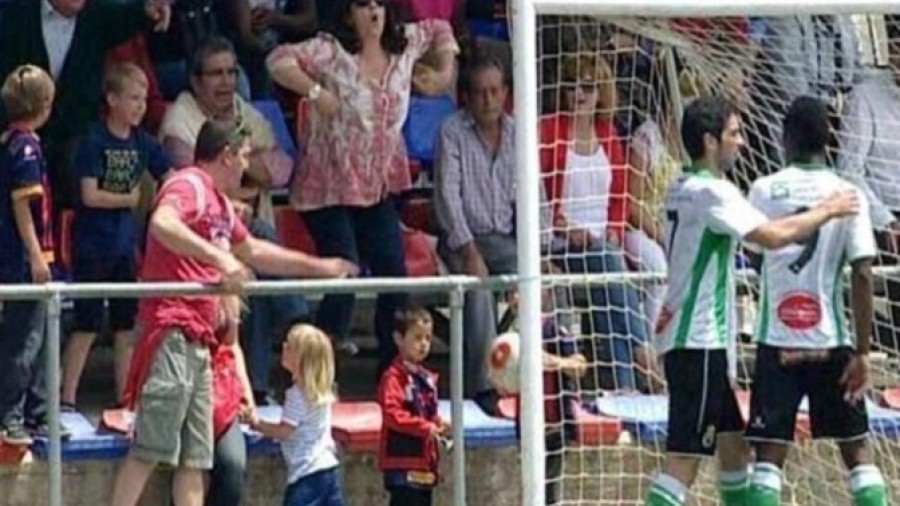Llagostera iz Girone i Racing Santander igrali su prvu utakmicu razigravanja za ulazak u drugu ligu koja je završila bez golova. Žena koja je bila u skupini navijača domaće momčadi, ”majmunskim gestama” je vrijeđala gostujućeg napadača Mamadoua Konea. Kasnije je identificirana je od strane kluba. Predsjednica Llagostere Isabel Tarrago dala je njezin identitet policiji.