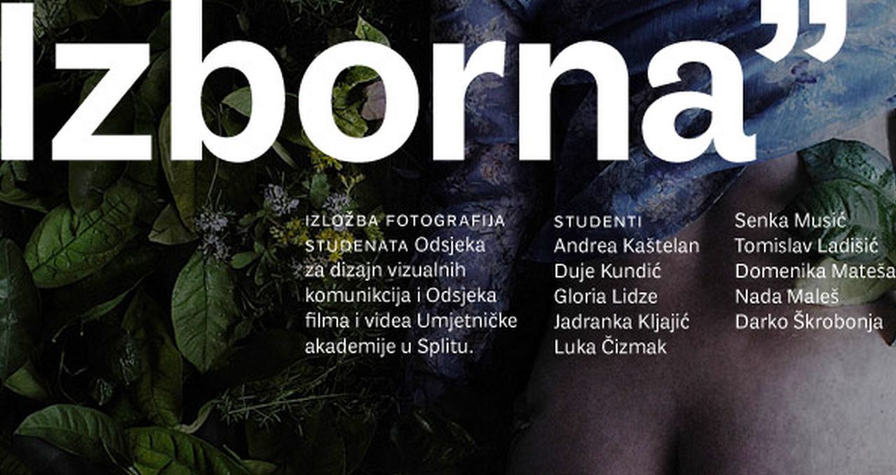 Izložba fotografija studenata Umjetničke akademije Odsjeka za dizajn vizualnih komunikacija i Odsjeka filma i videa pod nazivom “Izborna” otvara se sutra u utorak 5. travnja u 19.30h., u Galeriji Fotokluba Split, Marmontova 5, a biti će otvorena do 13. travnja.