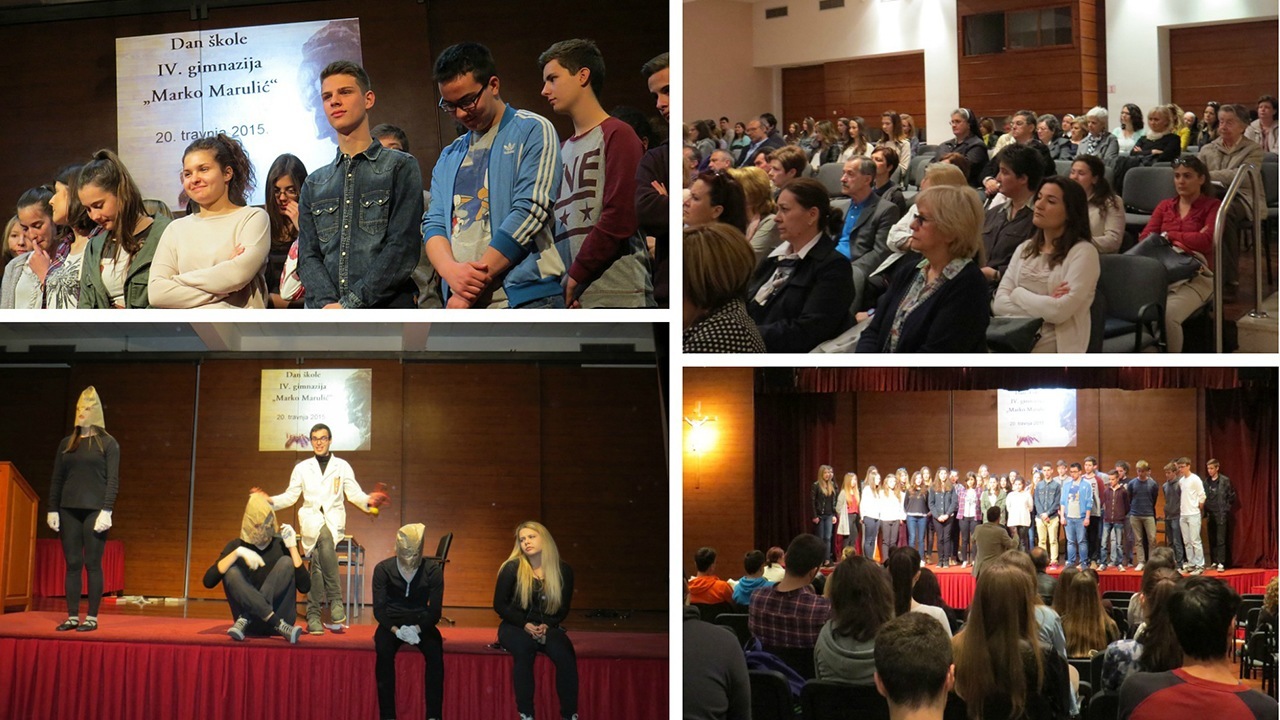 Svečanost proslavljanja Dana škole započela je nastupom mješovitog pjevačkog zbora IV.gimnazije “Marko Marulić” pod ravnanjem profesora Tomislava Veršića nakon kojega je uslijedio prigodni govor ravnateljice Ninočke Knežević.