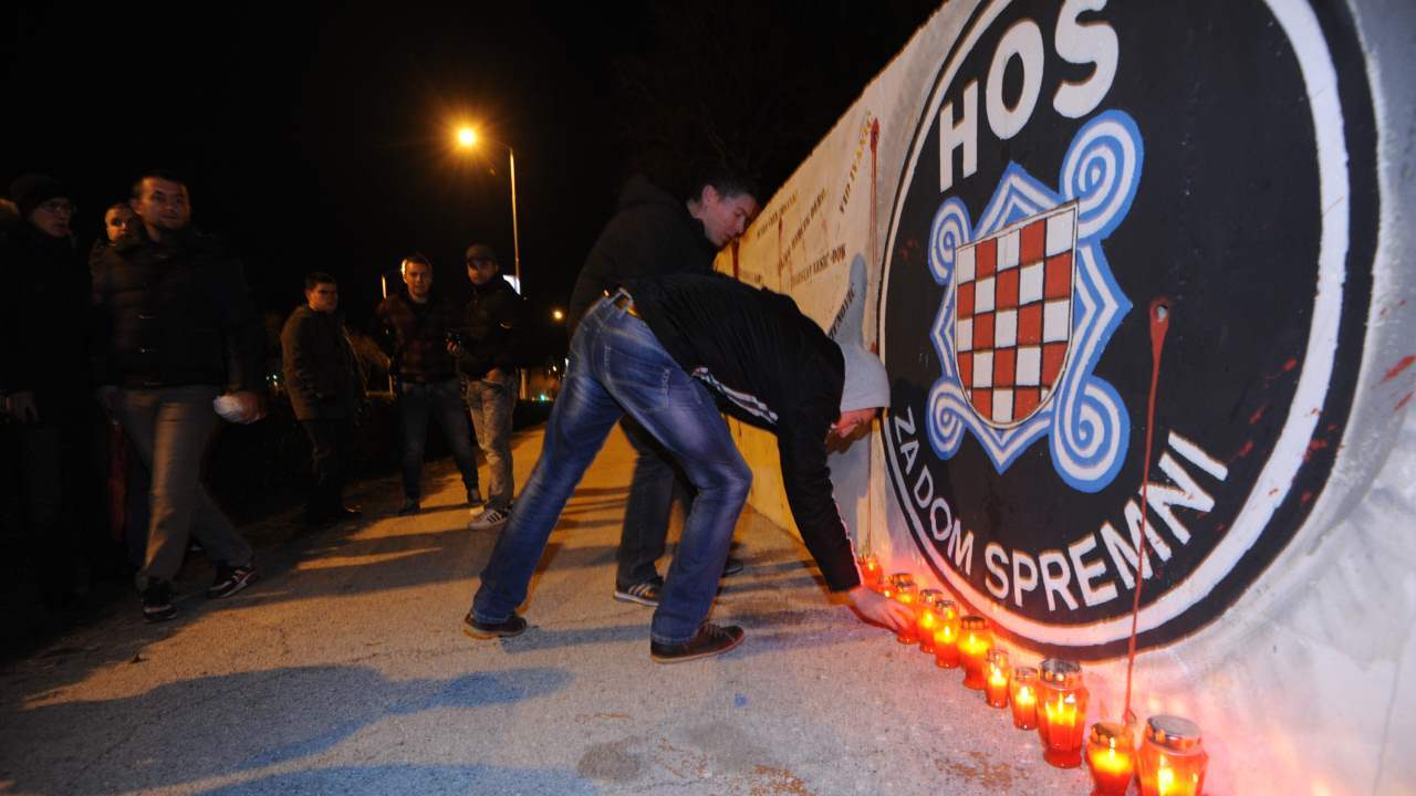 Nakon toga, u 19:30 zapalili su svijeće ispred spomenika HOS-u,