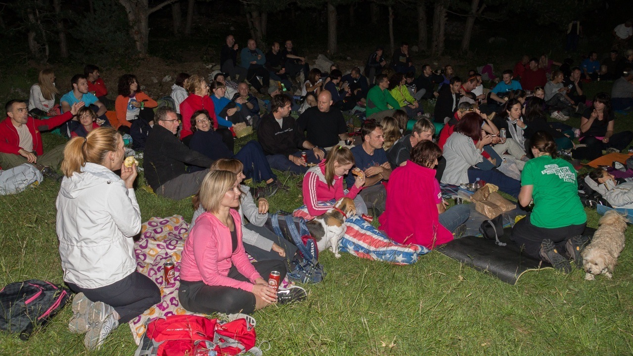 okupljeni su pod filmskim platnom na livadi smještenoj na 860 metara