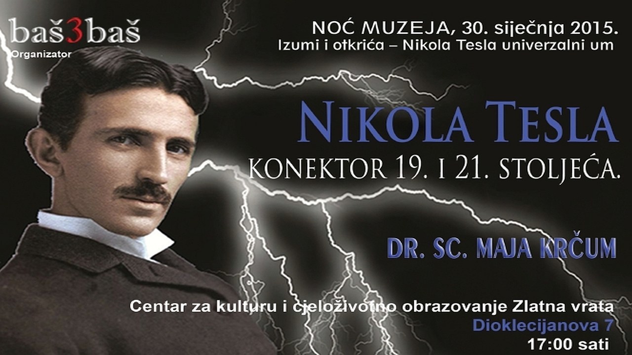 Poštujući zadanu temu “Izumi i otkrića – Nikola Tesla univerzalni um”, mr. sc. Maja Krčum, docentica Pomorskog fakulteta Sveučilišta u Splitu pripremila je predavanje “Nikola Tesla – konektor 19. i 21. stoljeća”.