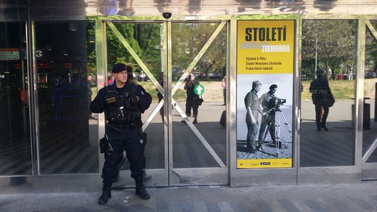Na praškom glavnom kolodvoru nalaze se deseci policajaca, od kojih su neki s psima, kao i vatrogasci, a vlakovi više ne prometuju.
