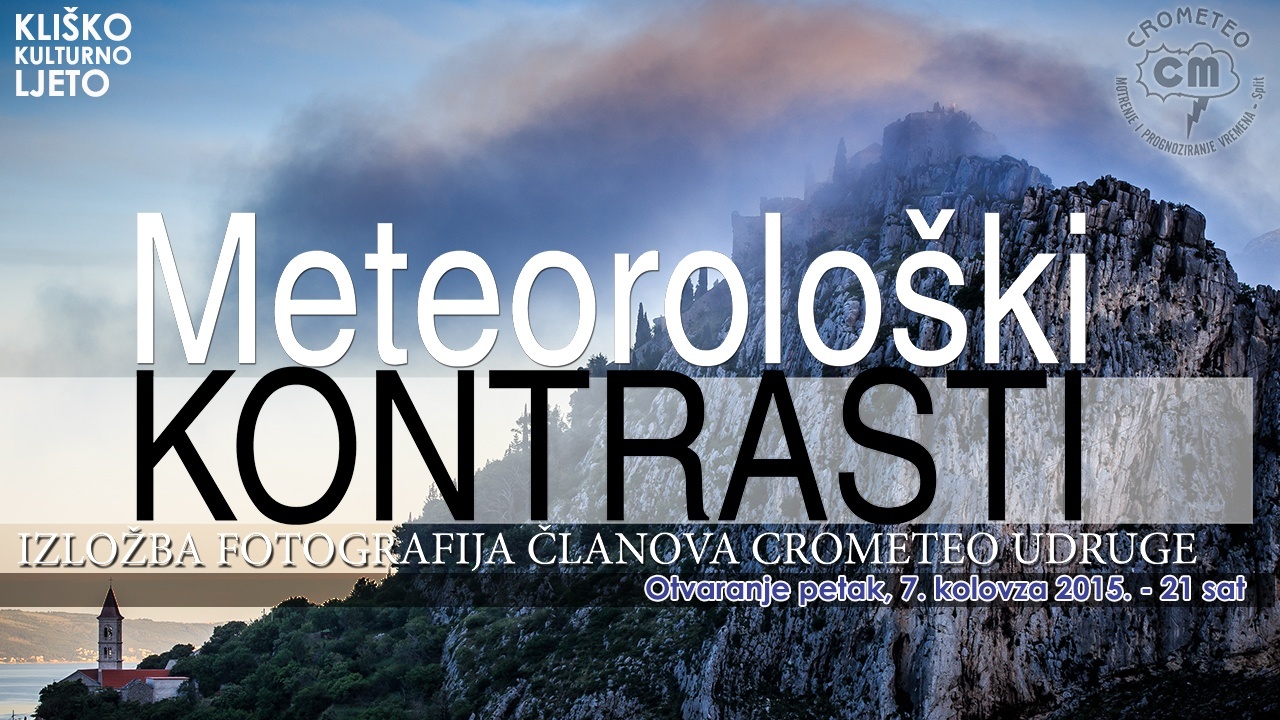 U petak (7. kolovoza), s početkom u 21 sat, u izložbenom prostoru tvrđave Klis bit će otvorena Crometeo izložba fotografija “Meteorološki kontrasti”. Iznimno popularna izložba, koja je već obišla veći dio Hrvatske, prvi put se predstavlja kliškoj publici. Izložba je dio programa Kliškog kulturnog ljeta 2015.
