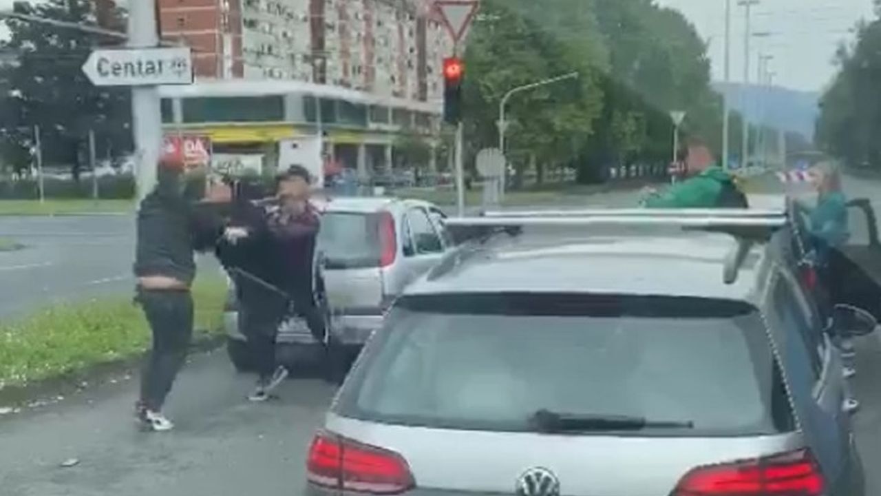 Naime, dok je svijetlilo crveno na semaforu, dvojica muškaraca su izašla iz automobila i počela se tući. Uskoro su izašli i suvozački koji su ih pokušali razdvojiti.