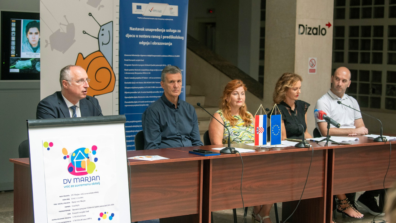 U atriju zgrade splitske Gradske uprave održana je danas završna konferencija EU projekta „Vrtić za suvremenu obitelj“ na kojoj su, uz gradonačelnika Ivicu Puljka, predstavnici Dječjih vrtića „Cvit Mediterana“, „Radost“ i „Marjan“ prezentirali ostvarene rezultate. Podsjetimo, riječ je o projektu kojeg su navedene vrtićke ustanove provele u partnerstvu s Gradom Splitom, a kojima su uvedene nove skupine produljenih boravaka u gradske vrtiće i time se roditeljima omogućilo ostvarivanje bolje ravnoteže između poslovnog i privatnog života.