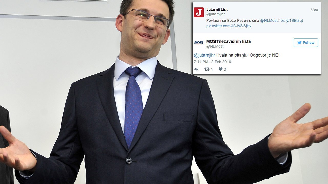 Tijekom dana nitko iz MOST-a nije komentirao ova nagađanja, no u ponedjeljak navečer oglasili su se na svom službenom Twitter profilu. Naime, na objavu Jutarnjeg lista o mogućem odlasku Petrova, MOST je sa službenog profila odlučno odgovorio: “Hvala na pitanju. Odgovor je NE.”