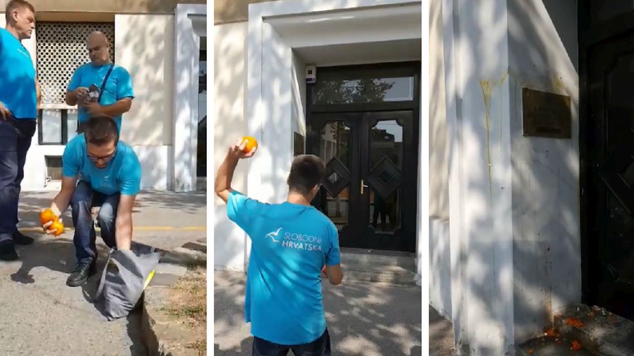 Članovi stranke Slobodna Hrvatska jajima i mandarinama gađali su zgradu HDZ-a u Zagrebu, a ovaj čin su prenosili uživo na Facebooku.