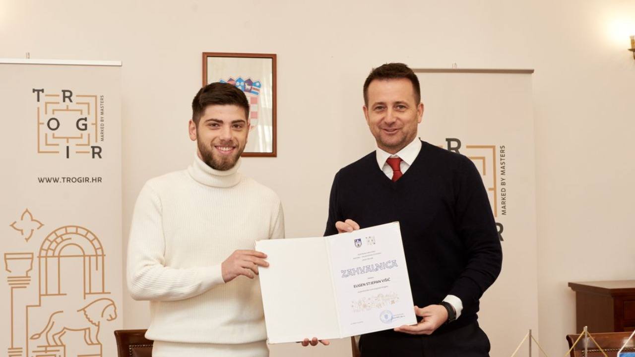 Mladi Trogiranin Eugen Stjepan Višić na prijemu kod gradonačelnika