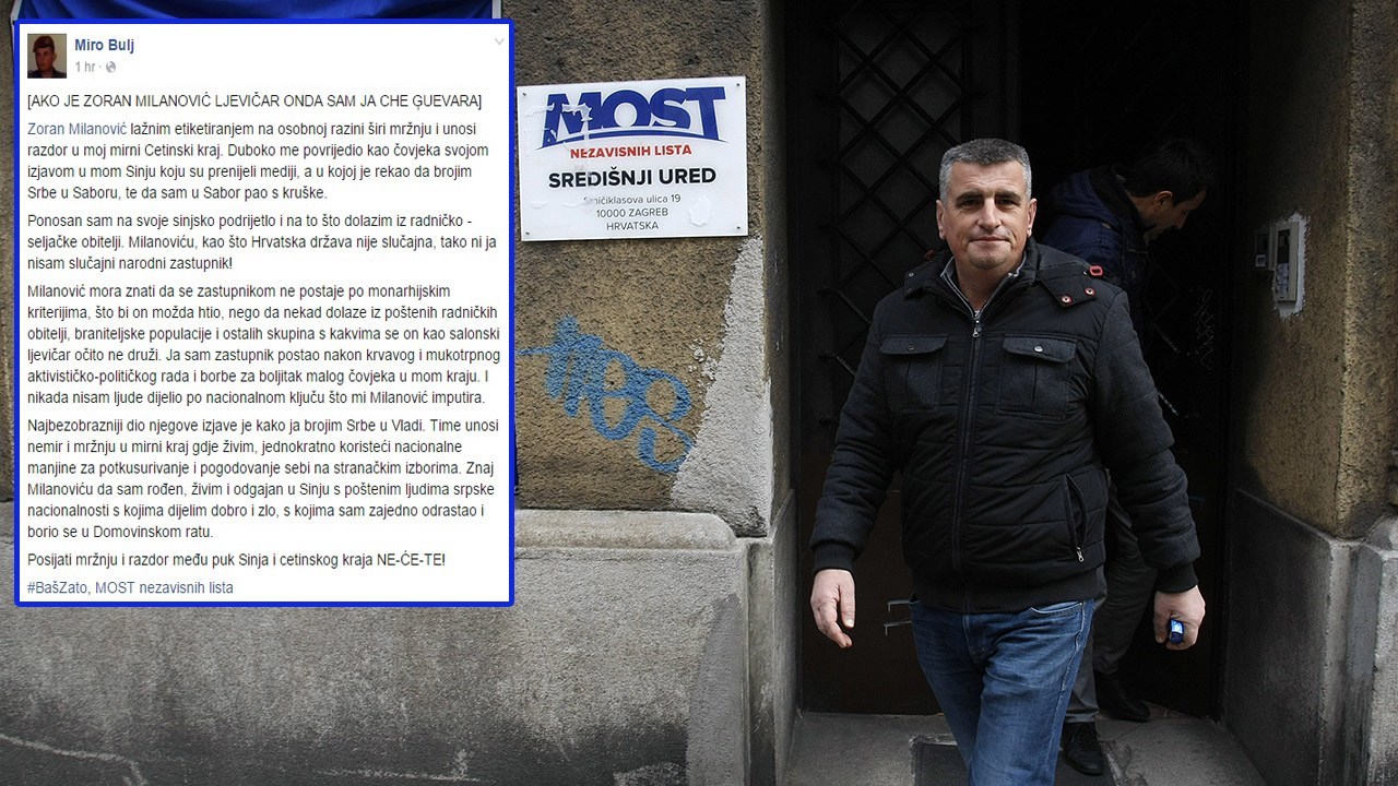 Nastavno na SDP-ov skup u Sinju gdje je, kako smo jutros izvijestili, Zoran Milanović sasuo “drvlje i kamenje” na brojne mete, među njima i Mira Bulja, oglasio se i prozvani Mostov saborski zastupnik.