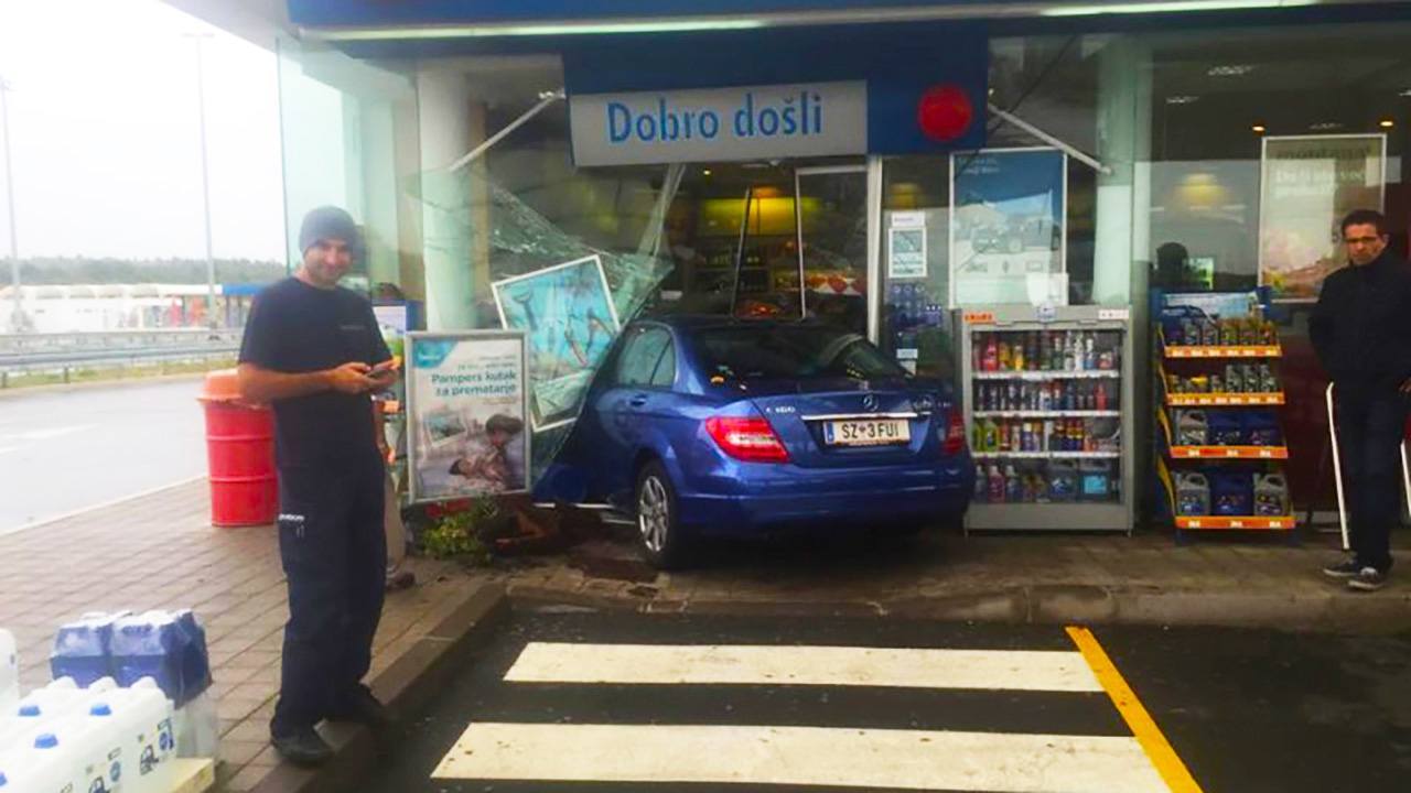 Mercedes austrijskih registarskih oznaka u četvrtak je oko podne “pomeo” staklena vrata benzinske pumpe INA na autocesti A1 kod odmarališta Prukljan kod Skradina, a osim razbijenog stakla, druge štete nema, niti je itko ozlijeđen, doznaje ŠibenikIN u policiji.