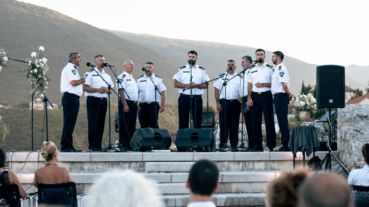 Poseban danak svečanosti ovoga otvaranja nastupom dala je Policijska klapa sv. Mihovil koja je pjesmom podno staroga grada uvela u večer. Također, atmosferu su učinili očaravajućom mladi sinjski glazbenici, braća Ivor i Natan Zlodre, izvodeći skladbu renomirana skladatelja Astora Piazzolle na saksofonu i gitari. Nakon razgledavanja izložbe u Muzeju Cetinske krajine – Sinj, oduševljena publika imala je prilike čuti autorsku pjesmu pod nazivom Ej, Cetino! muzejskoga dvojca Muzea kojega čine restaurator Petar Radović i viša kustosica Danijela Petričević Banović, djelatnici Muzeja Cetinske krajine. Ostatak večeri, uz domjenak profesionalnoga Catering Dalmacija iz Solina i donaciju Cetina d.o.o., pod zvijezdama je pjevala Policijska klapa sv. Mihovil.