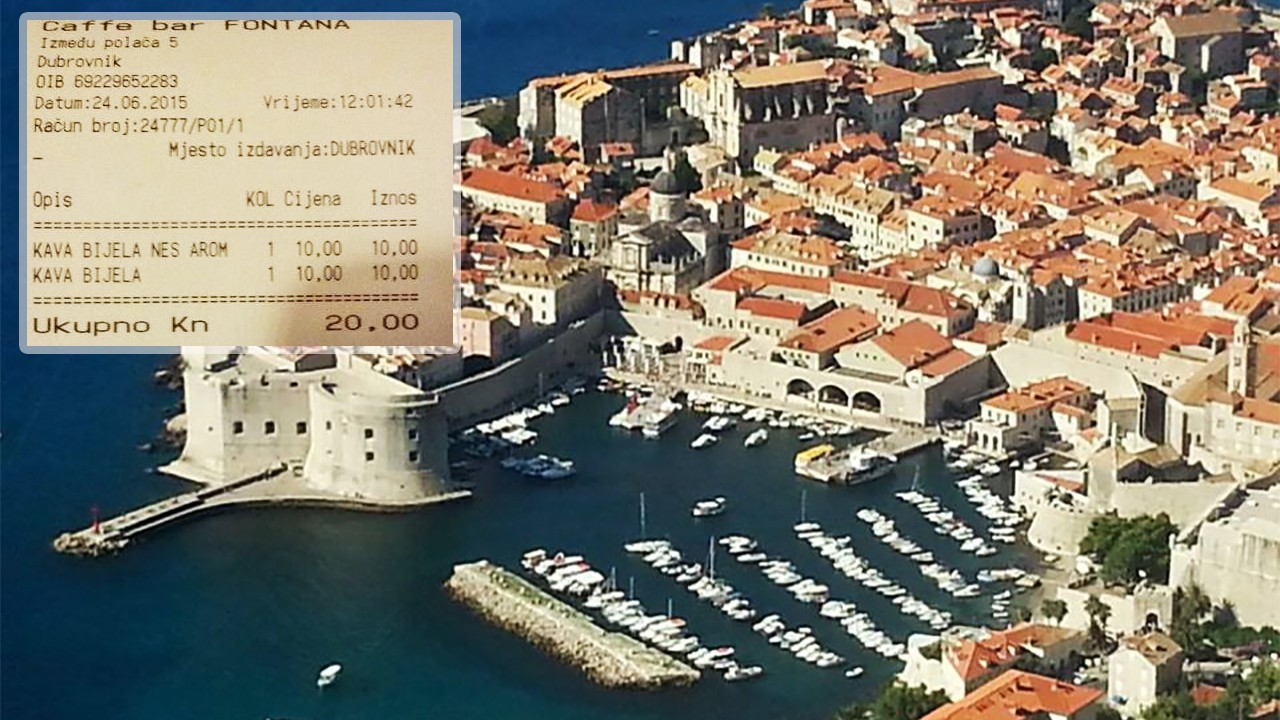 Kao što se može iščitati iz fotografije, unutar gradskih zidina moguće je popiti dvije kave, i to za 20 kuna! Novinari Dubrovačkog dnevnika naručili su bijelu kavu i “nesicu” te ih platili 20 kuna, u caffe baru Fontana koji je udaljen svega pet metara od Straduna.