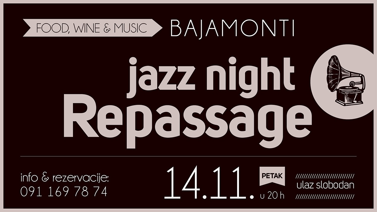 U petak 14.11.2014 u caffe-restoranu Bajamonti održat će se koncert Repassage banda koji će vam priuštiti nezaboravnu večer gipsy jazz swinga!