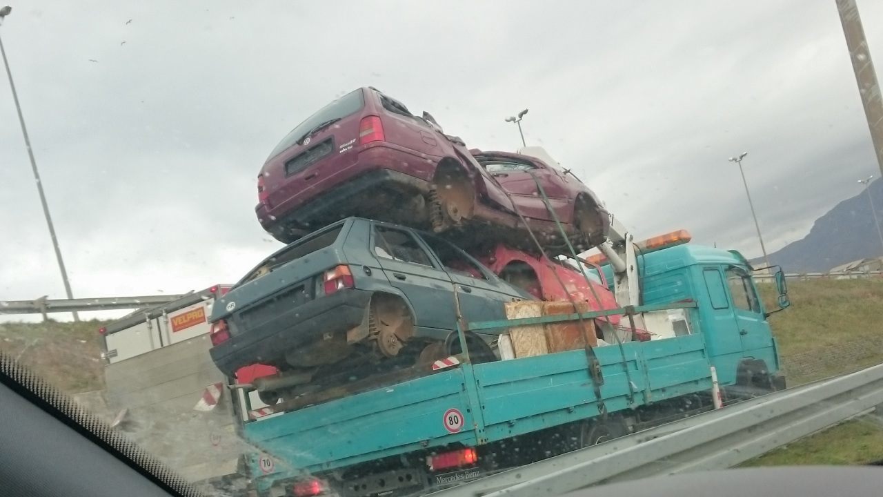 Split: Tko kaže da na kamion ne stanu tri olupine automobila?