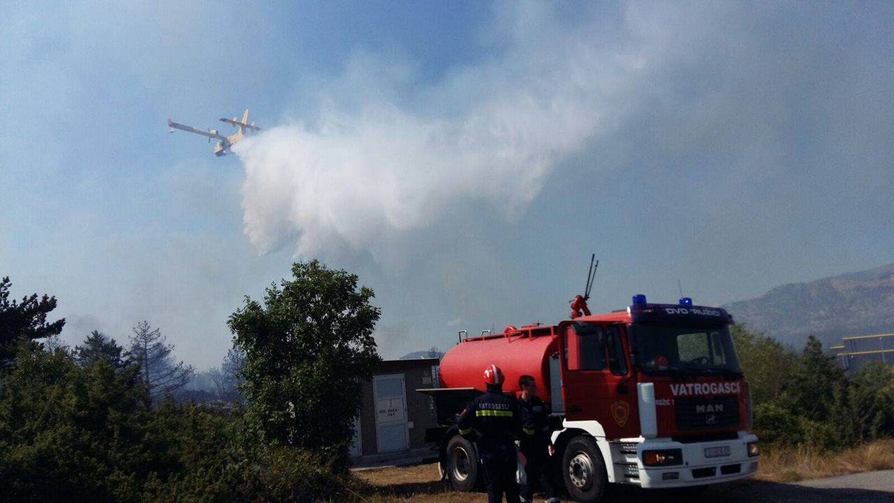 – Požar je pri kraju, nema više otvorenog plamena. Oko 30 vatrogasaca gasi uz pomoć dva air tractora. Izgorjelo je pet hektara trave, niskog raslinja, borove šume i nešto maslinika – govori zapovjednik županijske Vatrogasne zajednice.