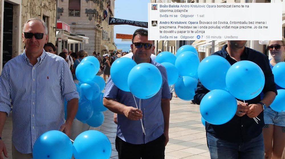 Balota je isprovocirao Oparu komentarima “čoviče,izda si sve splitsko”, na što mu je Opara odgovorio “Bulinu, otkotrljaj se iz mojega zjoga da te ne moran bombizat”. Tu nije stalo, a izvijesni Balota je nastavio sljedećim komentarima gdje proziva Oparu i gradskog vijećnika Hrvoja Marušića: “Andro Krstulovic Opara bombizat ćemo te na izborima,izdajniče” i “Popara neš bit poteštat hahahaha bombiz”. To je bio okidač za Oparu koji mu je uzvratio sljedećim komentarom: “Škovaco od čovika, čiribimbašu bez imena i prezimena. Predstavi se i onda pokušaj vriđat moje prezime. Jo da me te dovatit u papar bi te učinija”.