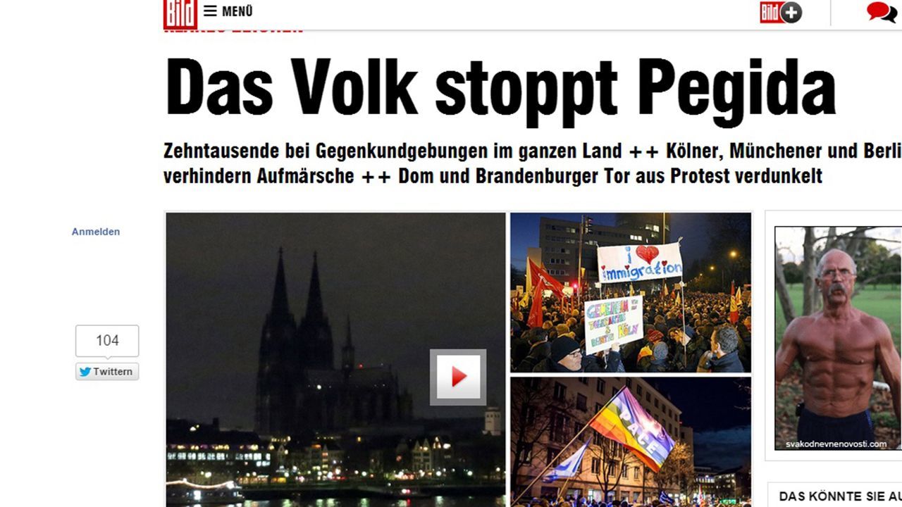 Bild je na prvoj stranici objavio poziv “Ne PEGIDA-i”, a na drugoj i trećoj stranici izjave 50 političara i ostalih javnih ličnosti koji su poručili: “ne ksenofobiji, da različitosti i toleranciji”.