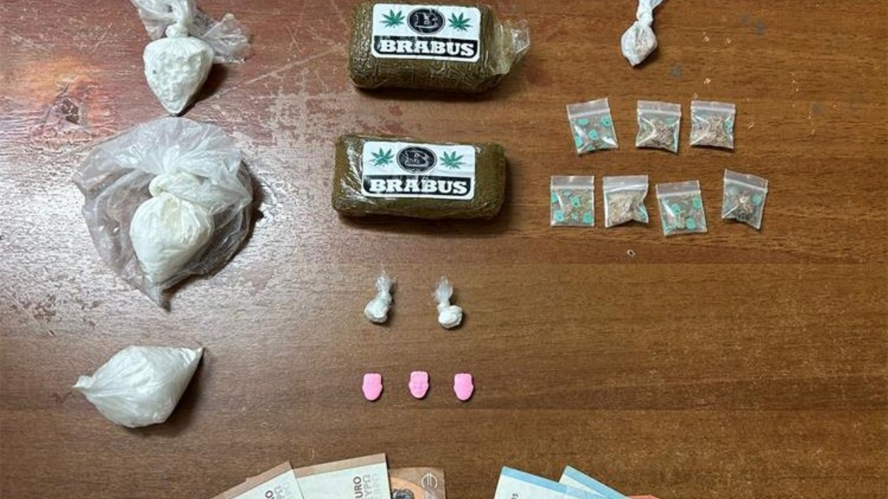 259,1 gram droge hašiš, 74,75 grama droge kokain, 8,2 grama droge MDMA, 3 tablete droge ecstasy, digitalna vaga, manja količina novca.