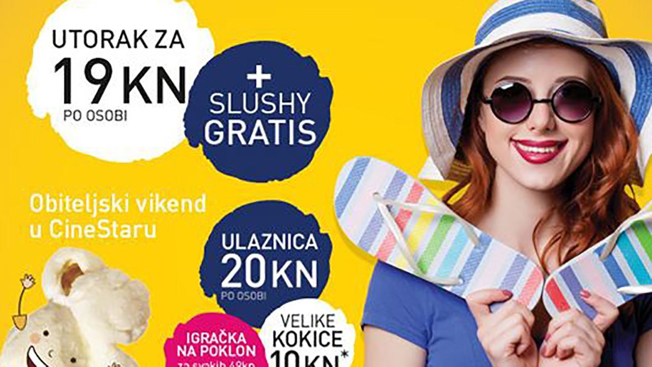 Da ljetni đir ne bude zabavan samo vikendom,CineStar je omogućio veliki popust i utorkom, kada svaku ulaznicu možete kupiti za 19kn, a uz nju dobivate i Slushy piće GRATIS!