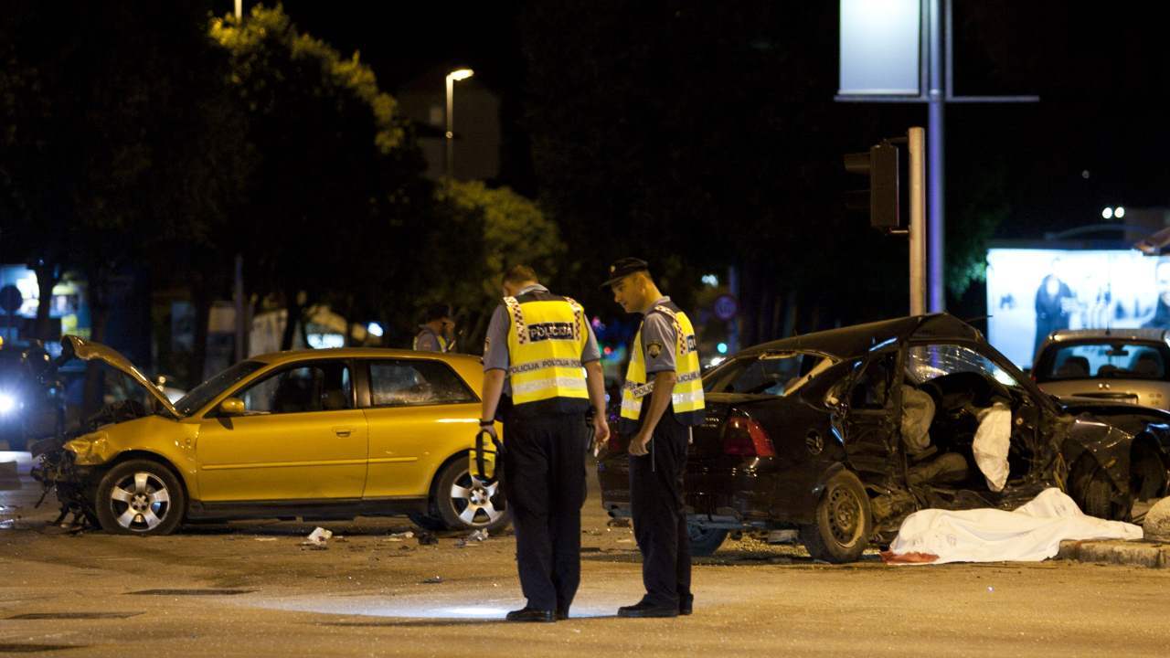 I onda, oko 21:50, događa se sljedeće: automobil marke Opel dolazi Velebitskom iz smjera Žnjana i započinje polukružni okret oko semafora, a iz suprotnog smjera ogromnom brzinom (možda i većom od 90 km/h) dolijeće spomenuti Audi i zabija se u njega bočno ravno u suvozačeva vrata, nakon čega Opel odlijeće prema nogostupu i udara u betonsku polukuglu te je silinom udara odvaja od tla i odbacuje preko cijelog nogostupa!