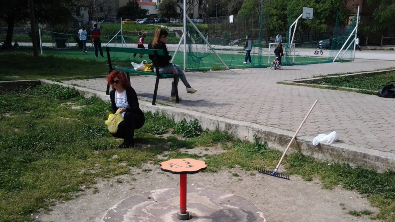 iz malenog parka i prebacili se na čišćenje okoliša oko igrališta.