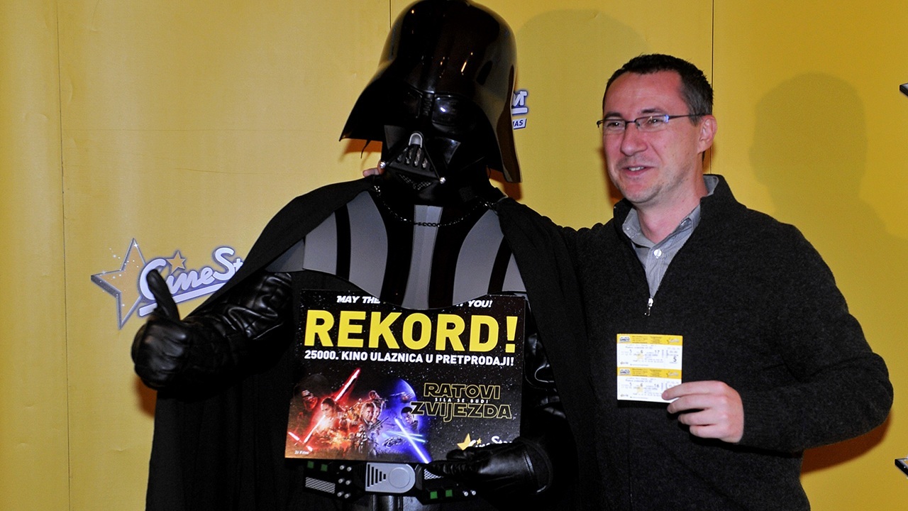 Šest dana prije početka prikazivanja sedmog nastavka jedne od najslavnijih svjetskih filmskih franšiza, “Ratovi zvijezda: Sila se budi” u Hrvatskoj, u pretprodaji je prodana 25 tisućita ulaznica, čijeg su kupca, Ivana Mužara, u zagrebačkom Cinestaru dočekali Branka Krstulović i kostimirani likovi iz filma.