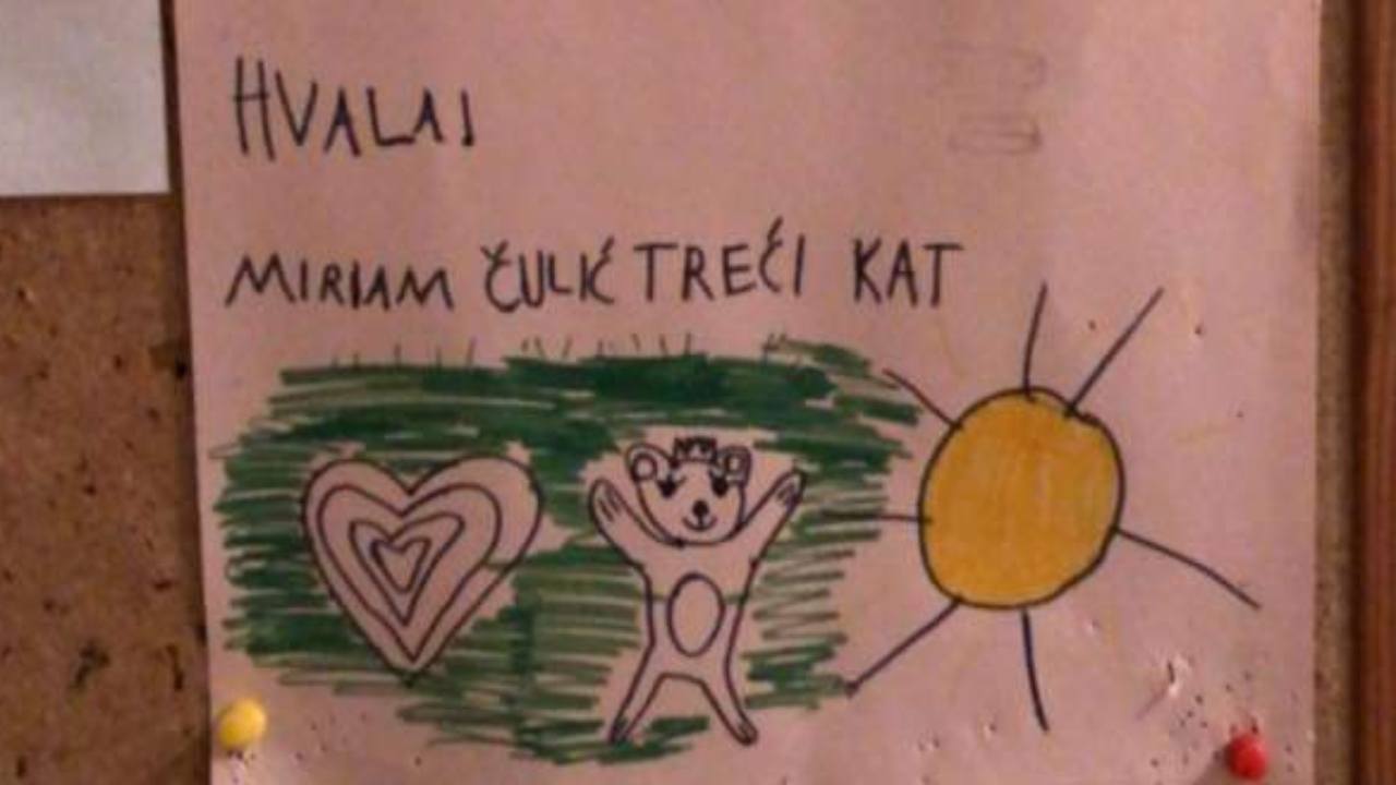 Baš lijepo, s puno sreće i djetinje radosti Miriam je ukrasila poruku i zamolila susjede da joj pomognu u skupljanju čepova pa je tako uz svoje ime na dnu obavijesti nacrtala srce, medu i sunce.