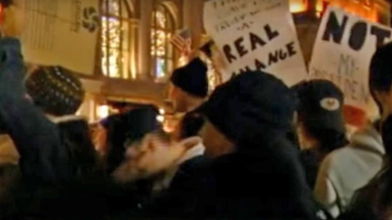 Demonstranti su se u New Yorku ponovno okupili u Washington Square Parku i ispred zgrade u kojoj novoizabrani predsjednik živi na Petoj aveniji.