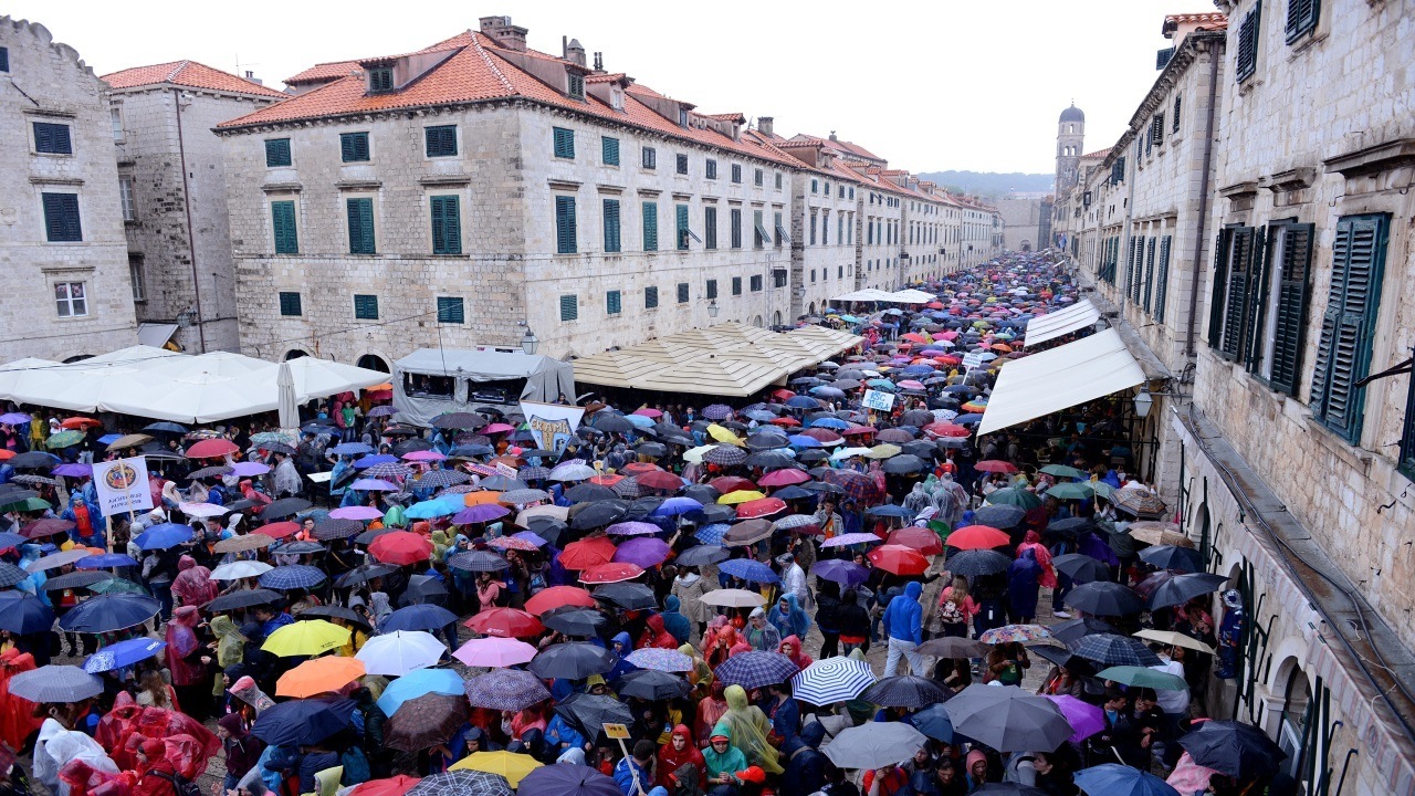 Unatoč lošem vremenu, u Dubrovniku vlada veselo raspoloženje, a središnji događaj susreta mladih bit će u 17 sati kada će se održati euharistijsko slavlje u Luci Gruž, koje će predvoditi biskup Uzinić kao domaćin susreta.