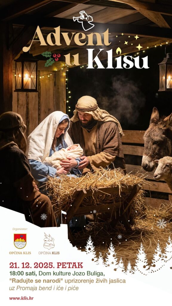 U parku Megdan bit će uprizorene žive jaslice „Radujte se, narodi“, koje pripremaju djeca folklorne igraonice: “Kliška dica” zajedno sa svojim tetama i roditeljima.