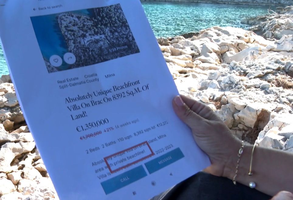 Turistička agencija iz Splita nedavno je objavila oglas u kojem se nudi na prodaju luksuzna vila u Milni na Braču, vrijedna oko 1,3 milijuna eura. Iako bi takav oglas mogao privući potencijalne kupce, vijest je postala zabrinjavajuća zbog uključivanja “privatne plaže” kao dijela ponude, što podpada pod pomorsko dobro. Oglas je slučajno uočio načelnik Milne, Frane Lozić, koji je za HRT istaknuo da je riječ o ozbiljnoj prevari, jer je prema Zakonu o pomorskim lukama nemoguće privatizirati plaže kao javno dobro.