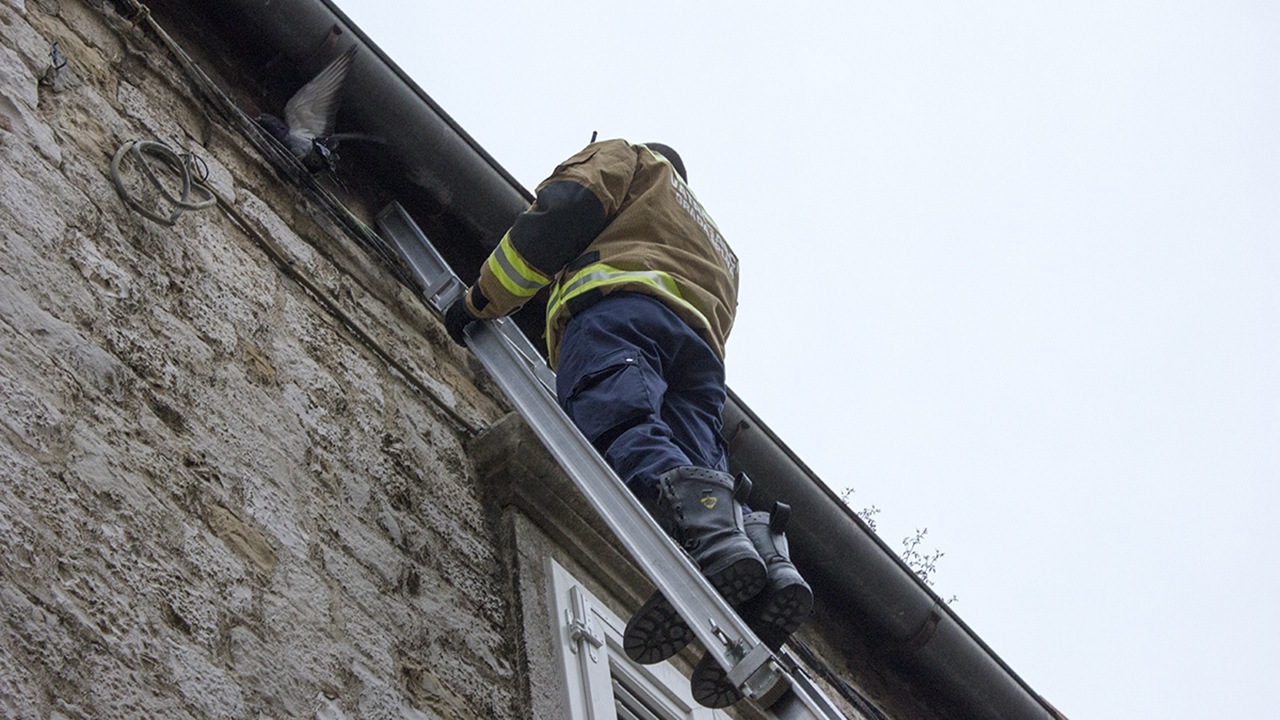 Kada se vatrogasac popeo do goluba koji se nalazio točno ispod žlijeba kuće i oslobodio mu nogu, ptica je pokušala poletjeti, ali bez uspjeha. Vatrogasci će ga zbrinuti…