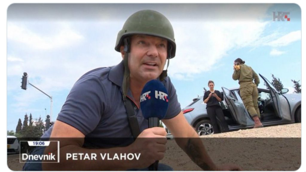 HRT-ov Petar Vlahov izvještavao iz Izraela s poda, iza njega žene tipkaju na mobitel: “Naš junački reporter”