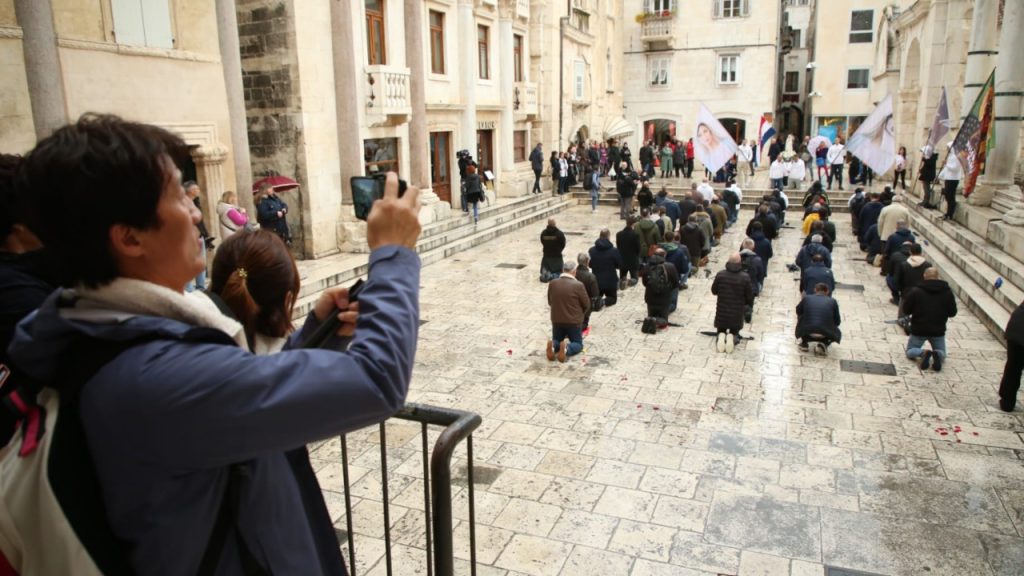[FOTO] Muškarci su i jutros molili na Peristilu, priključile su im se žene, a ponovno dočekali aktivisti