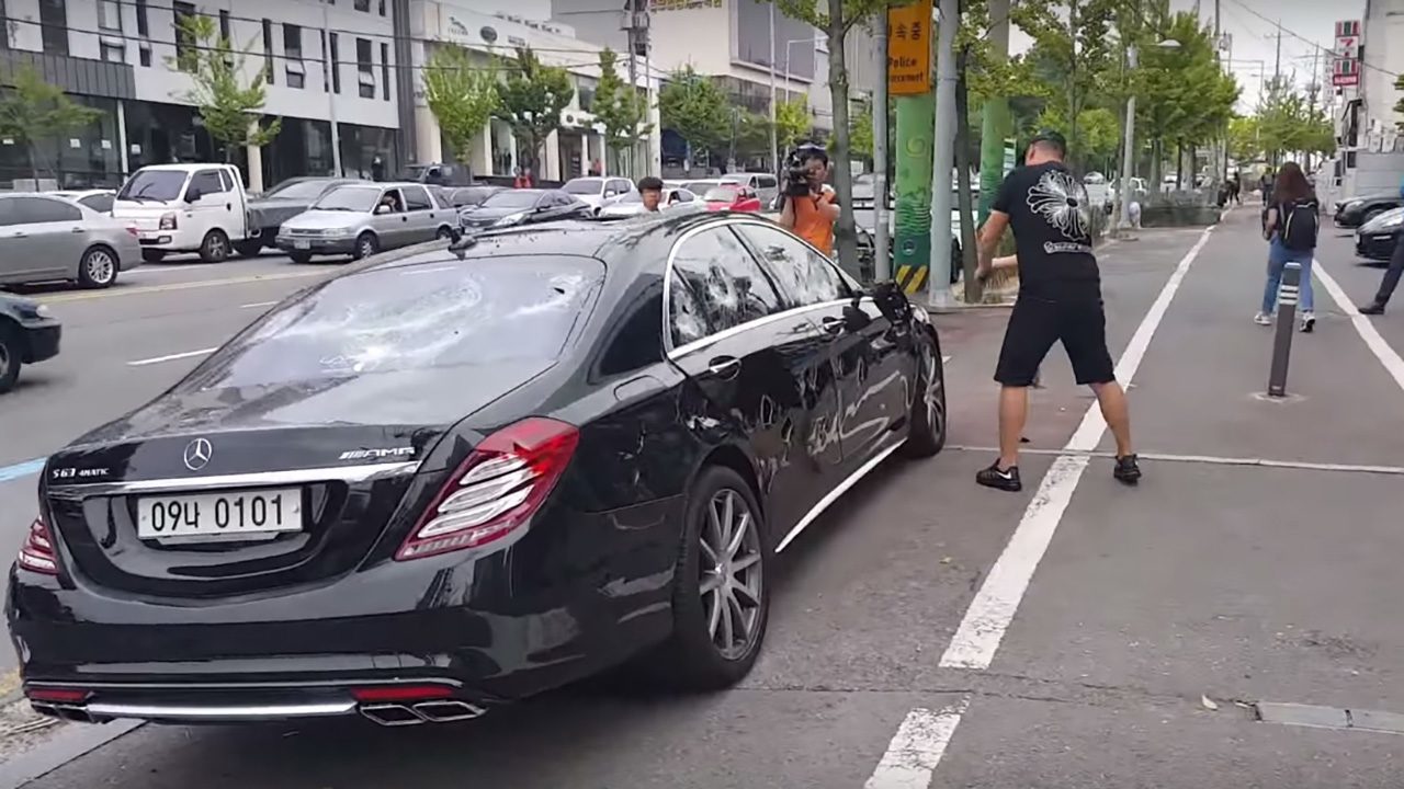 Parkirao je S63 AMG ispred dućana i krenuo ga uništavati. Nakon što je snimka demoliranja automobila postala viralna po objavi jednog od prolaznika, u cijelu su se priču uključile i televizijske kuće zatraživši vlasnika da za potrebe snimanja još malo izudarao auto.