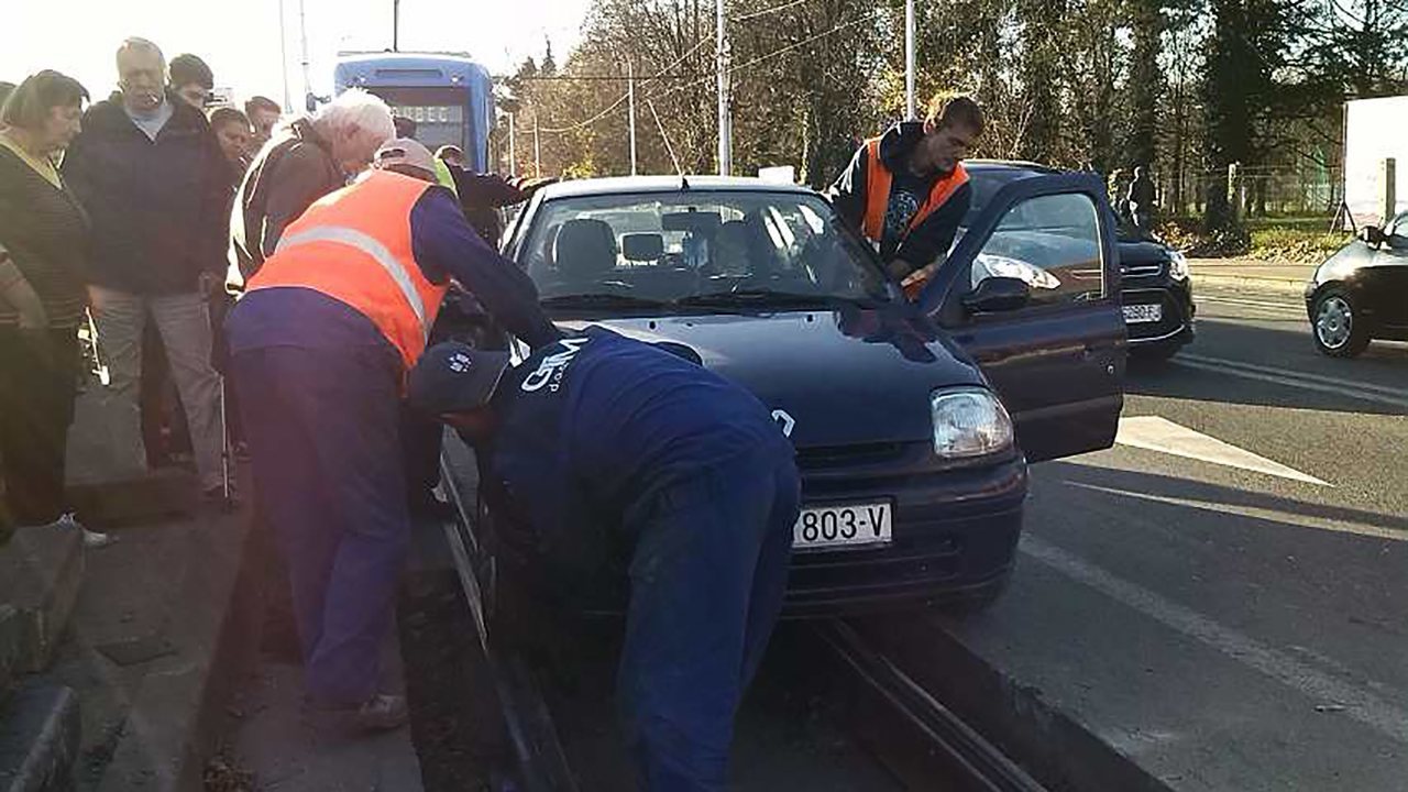 Pretekla tramvaj pa upala autom između tračnica