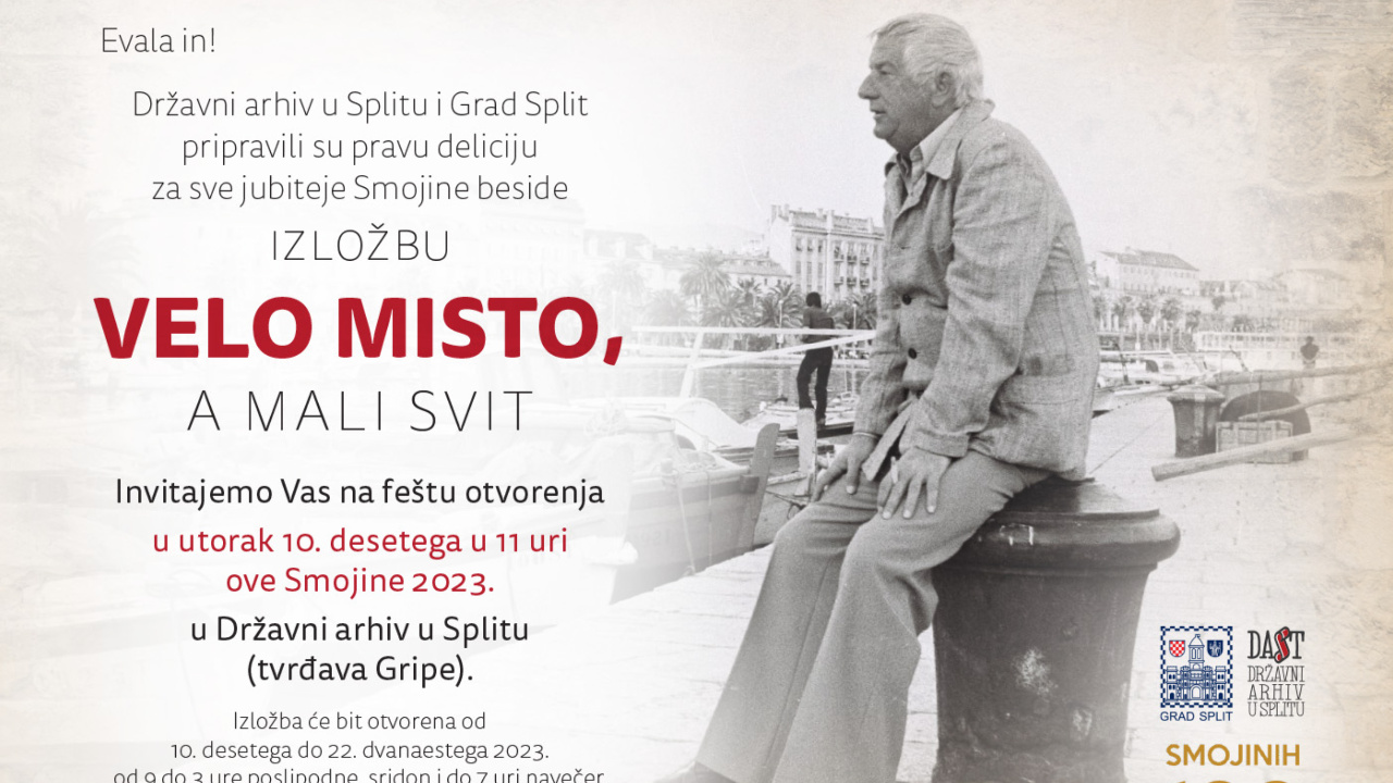 Prvi u nizu događaja je otvaranje izložbe “Velo misto, mali svit“ u utorak 10. listopada 2023. u 11 sati u Državnom arhivu u Splitu u tvrđavi Gripe, a u suorganizaciji Državnog arhiva u Splitu i Grada Splita.