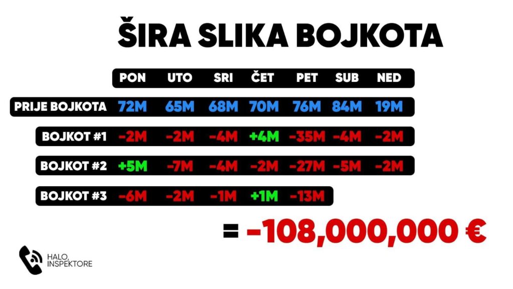 Bojkot trgovačkih lanaca, koji je pokrenula platforma “Halo, inspektore”, i dalje izaziva veliku pozornost javnosti. Inicijativa koja je okupila tisuće nezadovoljnih građana već je donijela prve rezultate – značajan pad potrošnje i reakcije trgovaca, ali organizatori ističu da borba nije gotova.