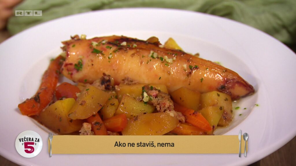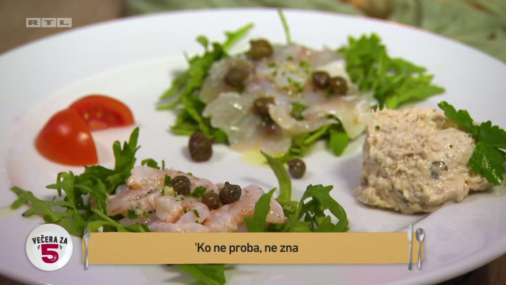 Tino je pripremu započeo desertom ‘Opusti se i uživaj’ kako bi se imao vremena ohladiti. „Nadam se da neće pomiješati čokoladu sa suhim smokvama jer onda od moje čokolade ništa“, rekla je Ana koja nije ljubiteljica suhih smokava. Iako smokve nije pomiješao s čokoladom dodao ih je u kremu od jaja u koju je dodao i ricottu i rum, a na to naribao čokoladu. Zatim je pripremao predjelo ‘Tko ne proba ne zna’, riblju paštetu i carpaccio te marinirane kozice. ‘Ako ne staviš, nema’ bio je naziv glavnog jela, a Josip je ispravno pretpostavio da je riječ o punjenim lignjama.