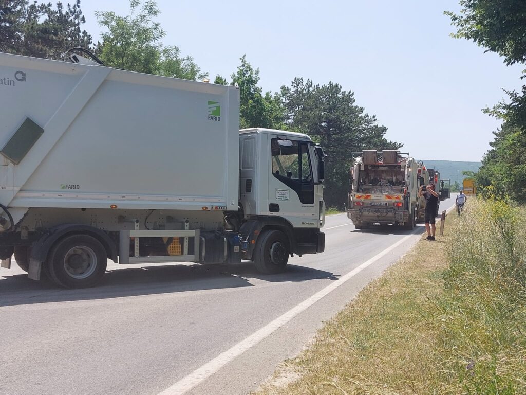 12:45 sati – Gradonačelnik Sinja na Lećevicu ide s četiri kamiona tvrtke “Čistoća Cetinske krajine” puna smeća. U ovim trenutcima kreće s odlagališta otpada “Mojanka”