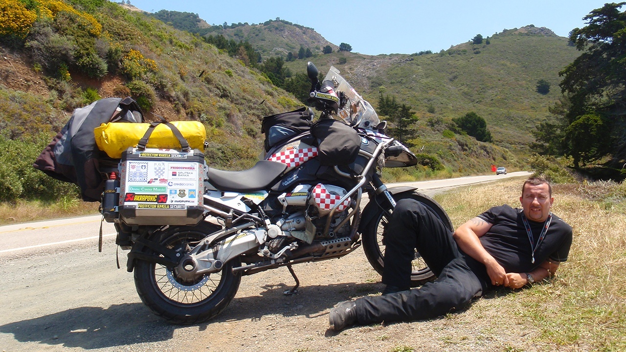 – Moram priznati, prvih sat vremena i nismo bas uživali, cijelim putem je bila jako gusta magla zbog miješanja sa kopna i sa oceana, ali poslije je bilo predivno. I baš sam na toj cesti okrenuo okruglo 200.000 km na svom GS-u. Morao sam stati da uslikam kilometražu i mjesto gdje se to dogodilo. Legao sam na zemlju pored motora i Ivana je napravila par fotografija za uspomenu. Motor je u mene nepunih pet godina i sa njim sam već napravio 200.000 km bez ikakvih većih problema. Nakon 11 sati vožnje i prijeđenih 800 km napokon ulazimo u Kaliforniju i dolazimo u Los Angeles kod našeg novog domaćina Bane Obrenovića koji me čekao pune tri godine. Prije tri godine kada sam krenuo na put oko svijeta sa svojim prijateljom Bubalom, Bane je bio među prvima koji se ponudio za pomoć, međutim zbog moje teške prometne nesreće u Sibiru morao sam odustati od putovanja (radi operacije) tako da se nismo susreli, ali evo moja upornost uvijek urodi plodom- nakon tri godine smo se vidjeli. Bane je veliki ljubitelj BMW motora i sad ih ima 4 komada u garaži – prepričava nam Rakela dalje svoje dogodovštine.