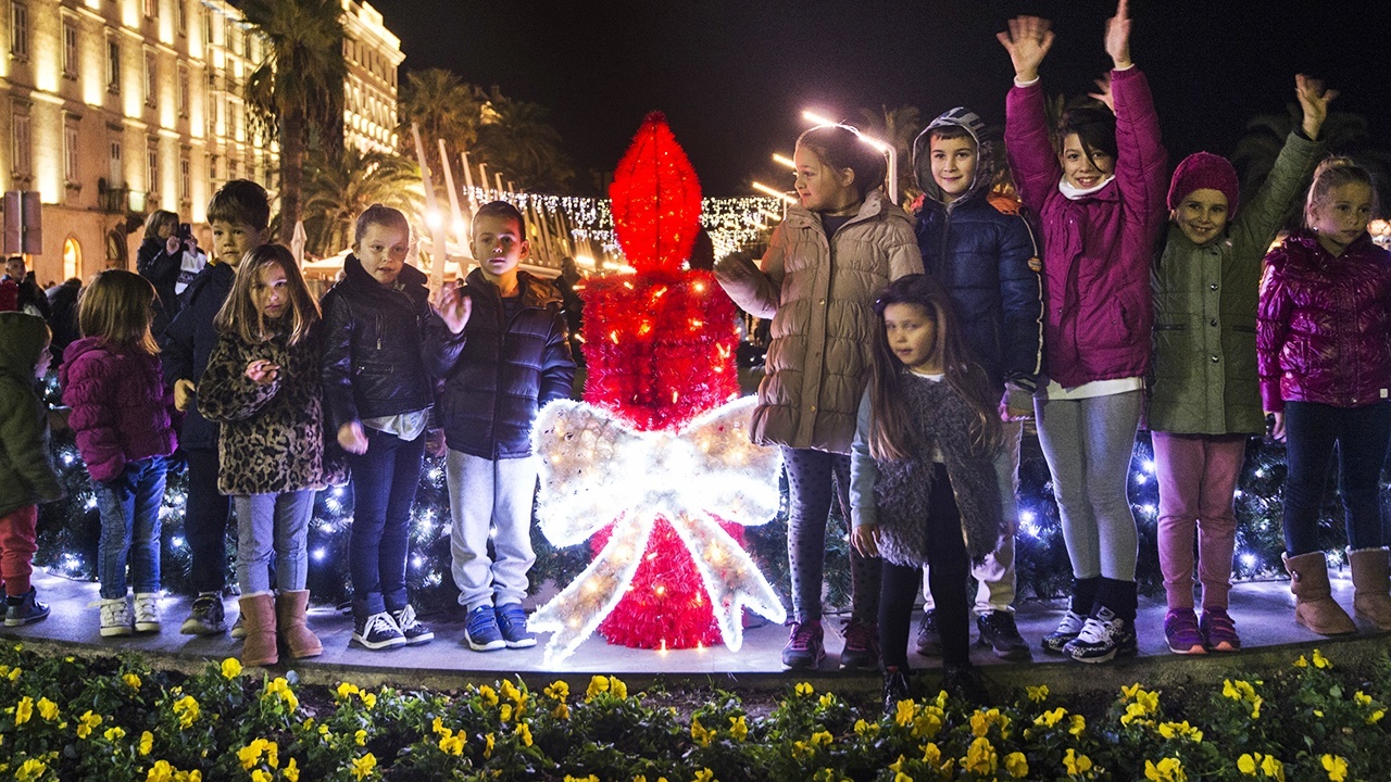 U Splitu je u subotu navečer upaljena prva svijeća na adventskom vijencu postavljenom oko fontane na zapdnom dijelu Rive, što je prvi put da se u Splitu taj tradicionalni crkveni obred organizira i na otvorenom.