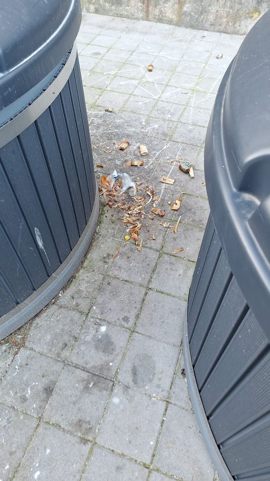 Na trećoj fotografiji, snimljenoj u Kukuljevićevoj ulici, zabilježeno je kontinuirano odlaganje kostiju pored polupodzemnog spremnika. Iako bi se na prvi pogled moglo pomisliti da osoba čini dobro djelo hraneći životinje, istina je daleko od toga. Ovaj čin ne samo da remeti okoliš nego i stvara nepotrebne probleme za sugrađane i gradske službe za čišćenje.