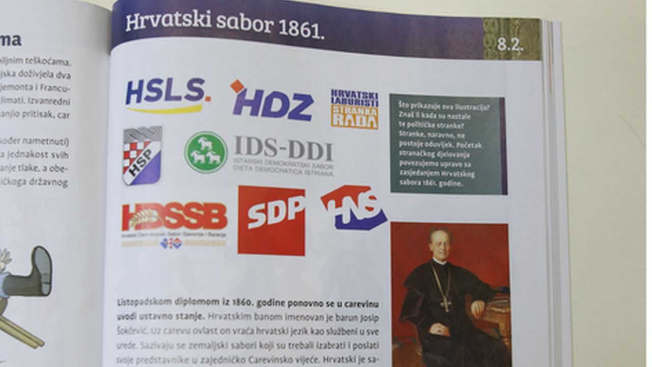 – Najveći problem je grafički sadržaj uz lekciju. Gornji grafički prilog pomalo je nesretno odabran jer se sastoji od loga i amblema današnjih političkih stranaka – rekao je Ravančić.